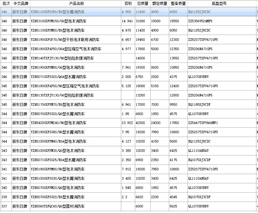 • 9月10日《道路機動車輛生產企業及產品公告》(第348批)和《享受車船稅減免優惠的節約能源 使用新能源汽車車型目錄》(第三十一批)擬發布內容的公示中看到,我公司有9款消防車車型公示,隨著這九款消防車的公示,加上之前已經下發的24款公告,我公司消防車公告車型已經達到33款,消防車車型更加完善,可滿足市場上所需消防車大部分的需求。以下是348批次公示車型和之前已經下發的公告。