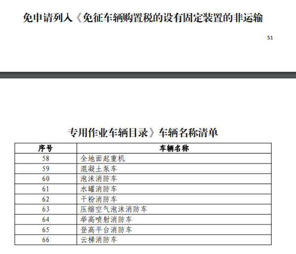 據(jù)了解器材消防車和搶險(xiǎn)救援消防車目前不具備免征的條件,所以這兩款車沒(méi)有免征。